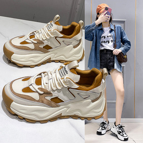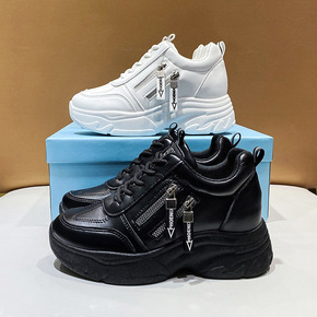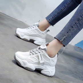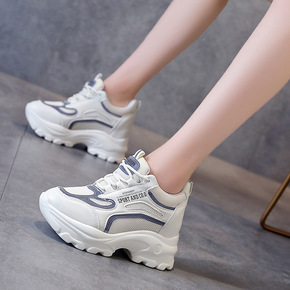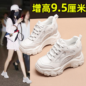 2022夏季新款厚底内增高小白薄款潮老爹鞋透气女帆...