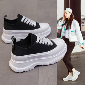 一件包邮帆布鞋女冬2022新款秋冬春秋内增高小白鞋...