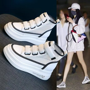 内增高小白鞋夏季新款厚底白鞋薄款松糕休闲运动鞋女...