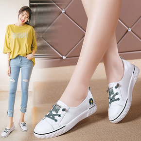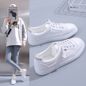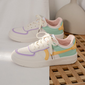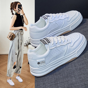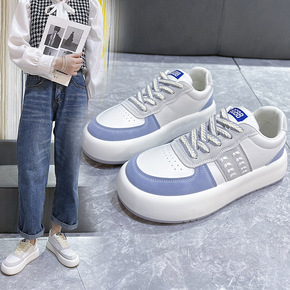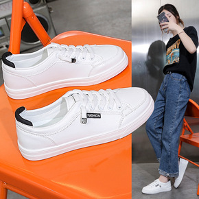 休闲板鞋女2022春夏新款女鞋平底学生皮面运动舒适...