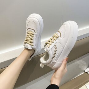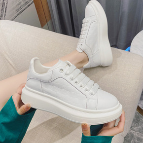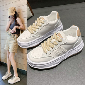 2022春秋款真皮大白鞋明星同款厚底女鞋系带休闲小...