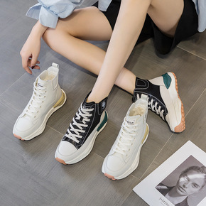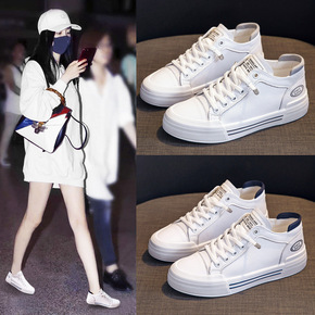 全皮小白鞋女2022秋冬新款韩版百搭高帮加绒女鞋学...