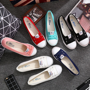 汤姆托马斯帆布鞋纯色平底休闲鞋情侣帆布鞋懒购男女鞋...