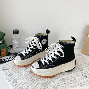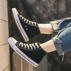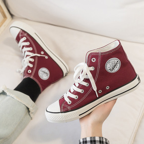 2021新款高帮帆布鞋女街拍复古学生ins硫化鞋韩...