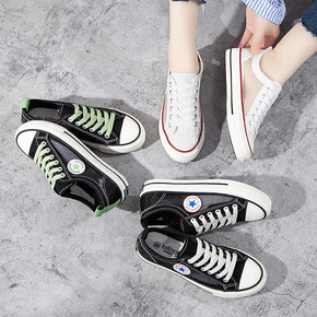 特价批发复刻基础款白色低帮帆布鞋女三次硫化品质白板...
