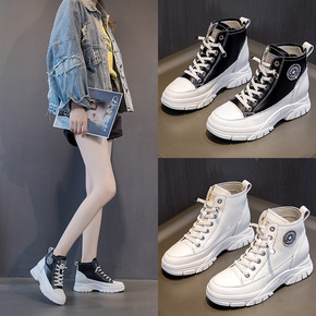 高帮帆布鞋女内增高2021秋季新款镂空透气松糕厚底...