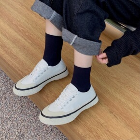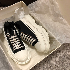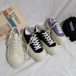 2021韩版新款坡跟帆布鞋女松糕跟厚底单鞋低帮小白...