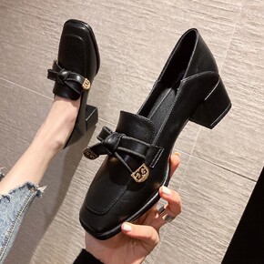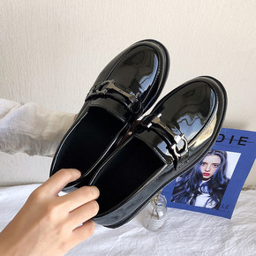 2019夏季新款厚底低跟网红小皮鞋女复古英伦学院风...