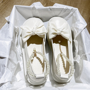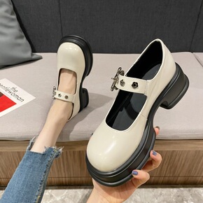 法式复古英伦风白色小皮鞋女2022新款厚底玛丽珍萝...