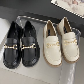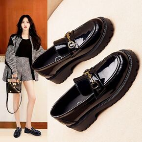 英伦风小皮鞋女夏2022新款厚底乐福鞋一脚蹬复古大...