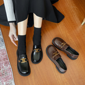 800-2 厚底乐福鞋女2022新款一脚蹬复古小皮...