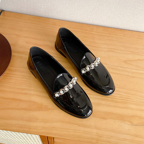 乐福鞋女夏季百搭2022新款串珠平底单鞋配裙子小皮...