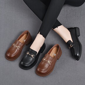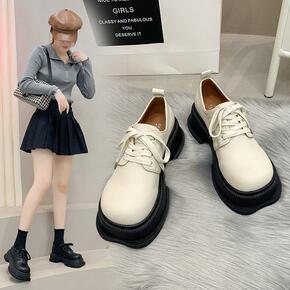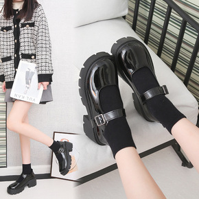 2022秋季新款深口小皮鞋女圆头学院鞋子韩国日常玛...