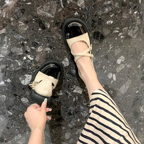 圆头粗跟一字扣休闲小皮鞋女2022夏季新款英伦风学...