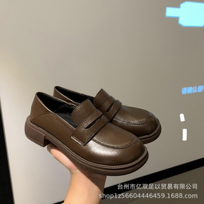 小皮鞋女新款2022春季英伦风复古棕色学生休闲平底...