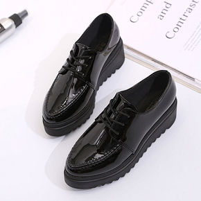 ZHR乐福鞋女新款英伦风厚底系带小皮鞋圆头真皮粗跟...