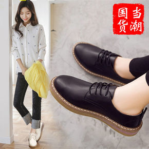 红蜓牌软皮女鞋职业英伦风系带厚底鞋子百搭时尚平底休...