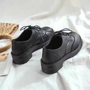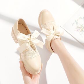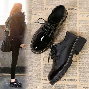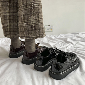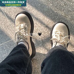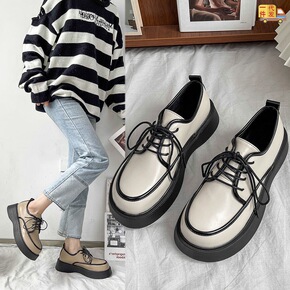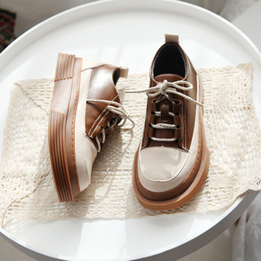 春秋新款方头厚底小皮鞋女日系学院风复古单鞋独特设计...