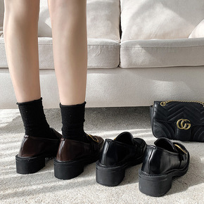 不后悔系列~英伦学院风厚底撞色小皮鞋女乐福鞋跨境...