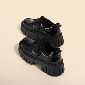 松糕厚底小皮鞋女2022年秋季新款增高英伦风黑色复...