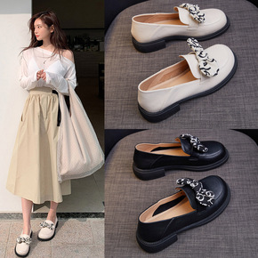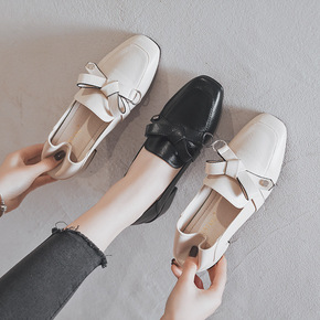2021新款春季乐福鞋女蝴蝶结时尚休闲软底小皮鞋学...