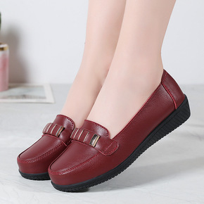 艾伊回女鞋休闲小皮鞋女软底浅口英伦豆豆鞋平底妈妈鞋...