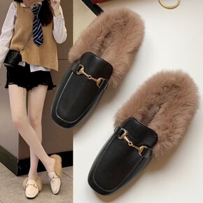 毛毛拖鞋女外穿秋季时尚包头半拖鞋学生韩版百搭单鞋女...