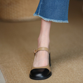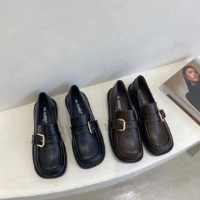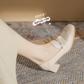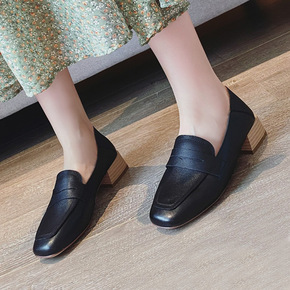 真皮乐福鞋小皮鞋女高跟鞋粗跟单鞋中跟鞋2021新款...