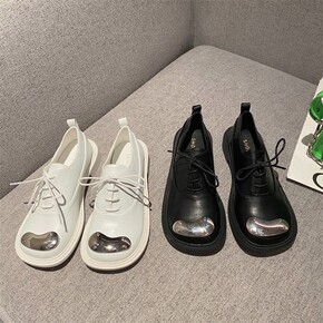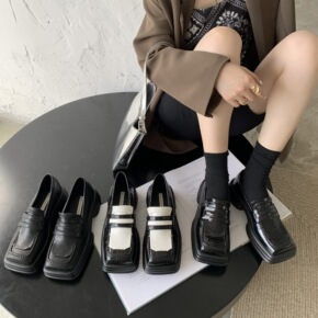 小皮鞋女英伦风2021秋季百搭韩版复古厚底懒人一脚...