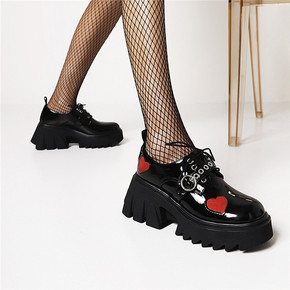 2021年韩版秋季新款时尚金属头大头单鞋女系带粗跟...
