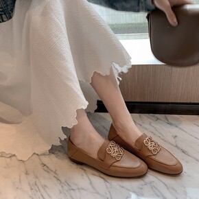 意尔康秋季新款乐福鞋女一脚蹬复古英伦风ins小皮鞋...