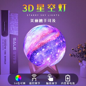 3D星空灯月球灯彩绘灯小夜灯星球灯卧室床头宿舍小夜...