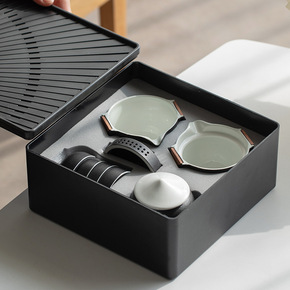 黑陶创意便携旅行茶具套装一壶四杯小套收纳简约功夫茶...