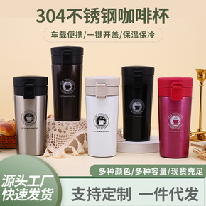 不锈钢一代咖啡杯便携双层真空弹跳盖保温杯商务车载礼...
