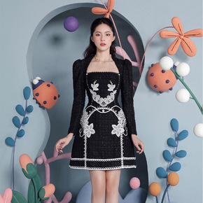 2022夏季新款优雅气质山茶花设计感小香风连衣裙女...