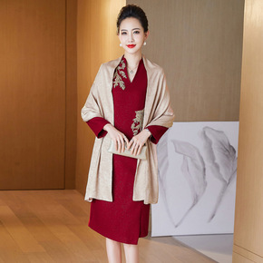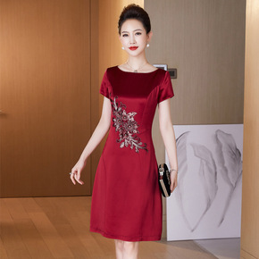 结婚礼服洋气高贵夏季妈妈秋装连衣裙阔太太洋气高贵绣...