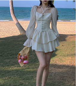 2022夏仙女森系白色小礼服法式优雅气质性感抹胸荷...