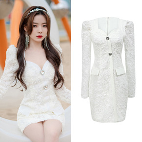 2022春季女装新款越南小众设计感水溶蕾丝裙气质红...