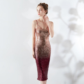 16325#宴会晚礼服女新款短款亮片洋装派对聚会小...