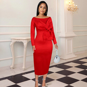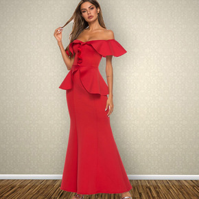 挂脖露肩高腰包臀派对礼服S-XXXL 大码女装 连...