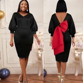 2022新款复古优雅连衣裙 轻熟深V修身显瘦包臀裙...