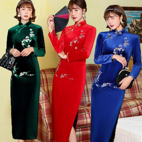 加绒长袖绣花棋袍礼服风加厚保暖年轻款日常舞台走秀演...