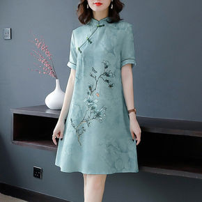 改良版高腰旗袍连衣裙2022夏复古中国风刺绣女装少...