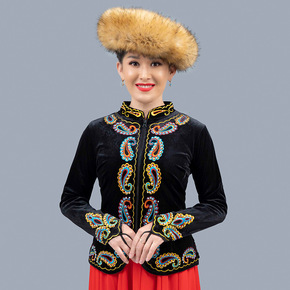新疆舞蹈服女维吾尔族成人广场舞演出服舞台表演修身金...