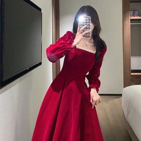2021年冬本命年公主裙子法式打底连衣裙女秋冬赫本...