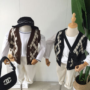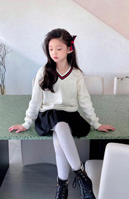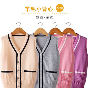 V字领儿童针织马甲上衣套头打底衫 2022新款韩版...