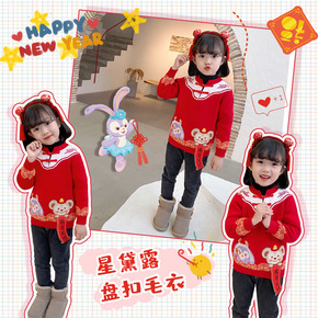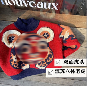 2021冬季新款 新年卡通恭喜发财红色男女儿童毛衣...
