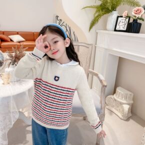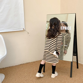 2022春季新款童装一件代发 女童韩版条纹毛线短袖...