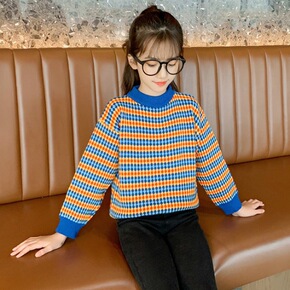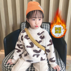 韩国童装2021秋冬韩版儿童加绒加厚毛衣男女童圆领...