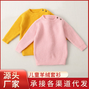 儿童纯羊绒衫秋冬款男童毛衣韩版圆领套头中大女童宝宝...